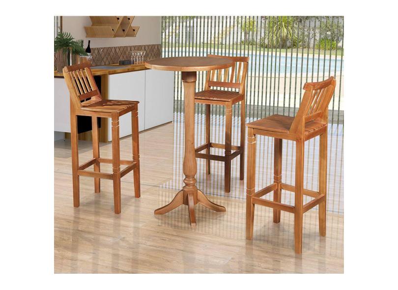 Conjunto Bistrô Mesa Madeira Maciça com 3 Banquetas Confort Ripada Castanha