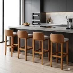 Conjunto Cozinha Alto Padrão 4 Banquetas Exclusiva Encosto Confortável Quadrado Acabamento Couro