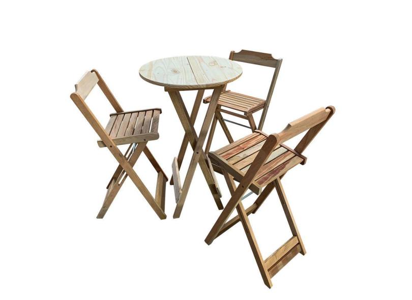 O menor preço encontrado no Brasil para Conjunto De Mesa Bistrô Dobrável Em Madeira Padrão Com 3 Banquetas Altas - Crua - Marrom atualmente é R$ 437,69.