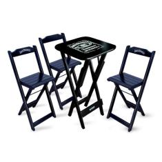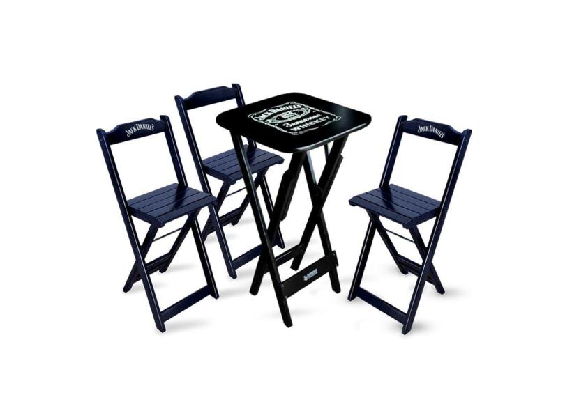 O menor preço encontrado no Brasil para Conjunto de Mesa Bistrô Dobrável Jack Daniel`s com 3 Banquetas de Madeira Preta atualmente é R$ 631,00.