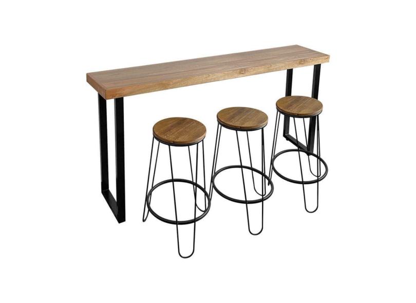 Conjunto Guatemala Mesa Aparador 180cm Com 3 Banquetas Industriais Base Em Ferro Preto Preto