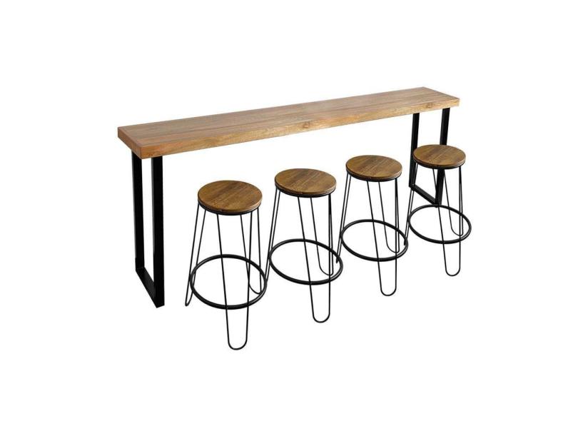 Conjunto Industrial 200cm Guatemala Aparador com 4 Banquetas Industriais Base Ferro Preto