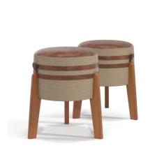 Conjunto kit 2 Puff Banqueta Linho e Couro - Pix - Bege
