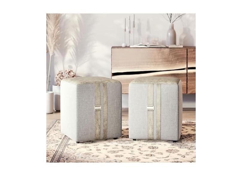 Conjunto KIt Puff Banqueta Domus Decorativo Luxo - Cinza