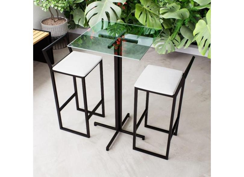 Conjunto Mesa Alta Bar Bistr Quadrada Vidro 2 Banquetas Conf