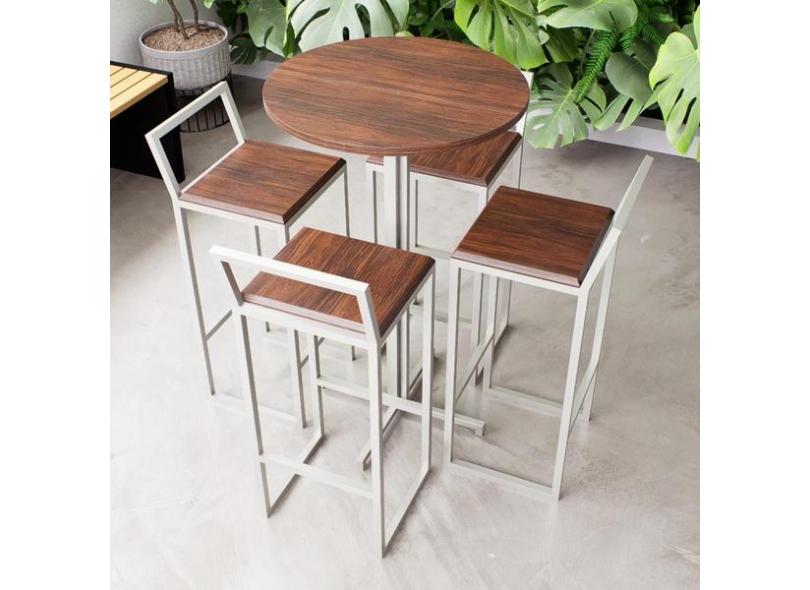 Conjunto Mesa Alta Bar Bistr Redonda Imbuia 4 Banquetas Conf