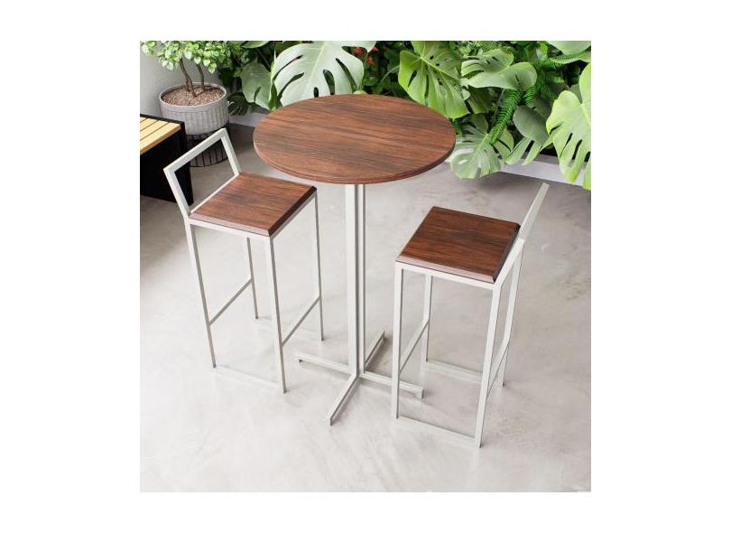 Conjunto Mesa Alta Bar Bistrô Redonda 2 Banquetas Confort Imbuia Indus
