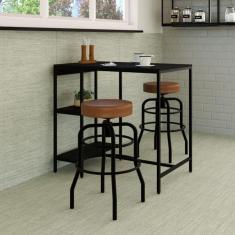 Conjunto Mesa Bistrô 2 Banqueta Aço Giratória Espresso Móveis Carvalho Dark/Preto/Caramelo