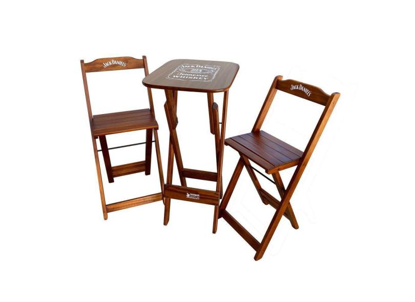 O menor preço encontrado no Brasil para Conjunto Mesa Bistrô Com 2 Banquetas Dobráveis De Madeira Personalizada Jack - Imbuia Marrom atualmente é R$ 477,87.