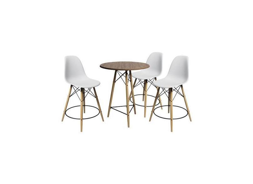 Conjunto Mesa Bistrô Eames Eiffel Amêndoa com 3 Banquetas Brancas de M
