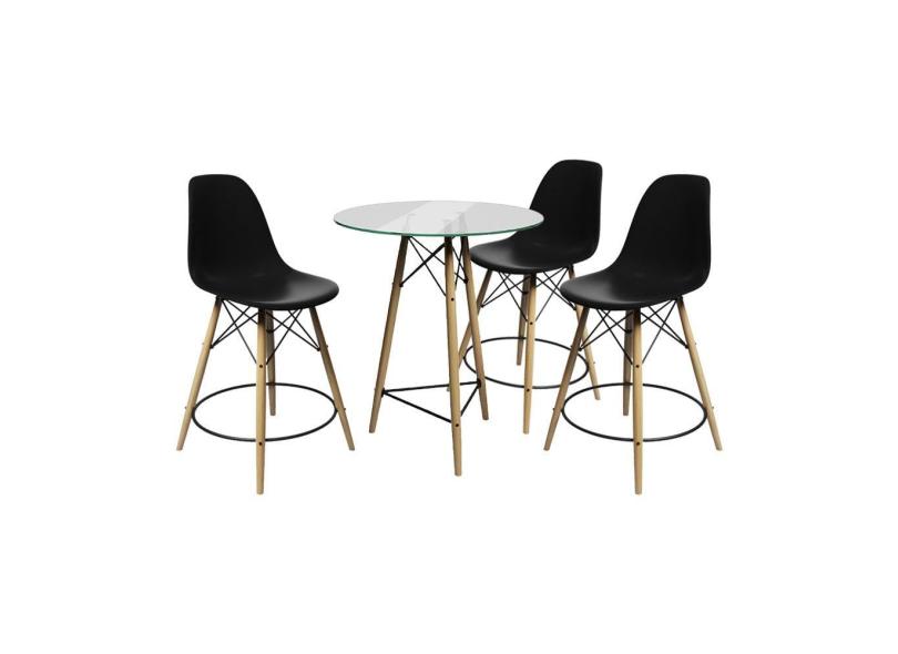 O menor preço encontrado no Brasil para Conjunto Mesa Bistrô Eames Eiffel Vidro com 3 Banquetas Pretas de Madeira atualmente é R$ 1.096,50.
