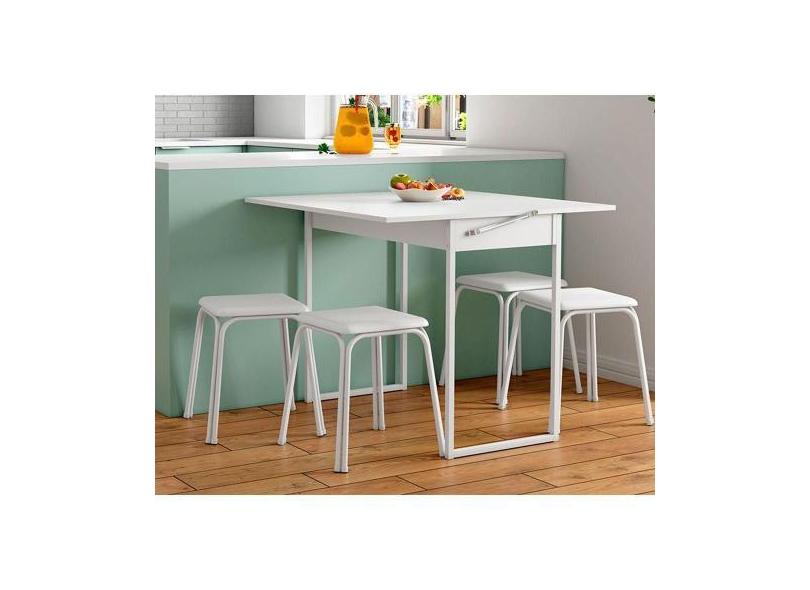 Conjunto: Mesa de Cozinha 1590 Extensível + 4 Banquetas Branco - Carra
