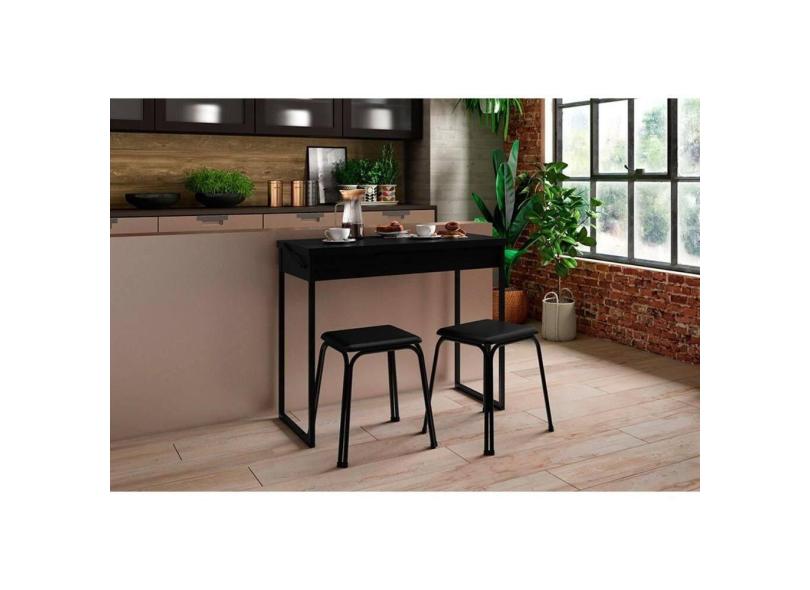 Conjunto: Mesa de Cozinha Dobrável 1590 c/ 2 Banquetas Preto/Preto - Carraro