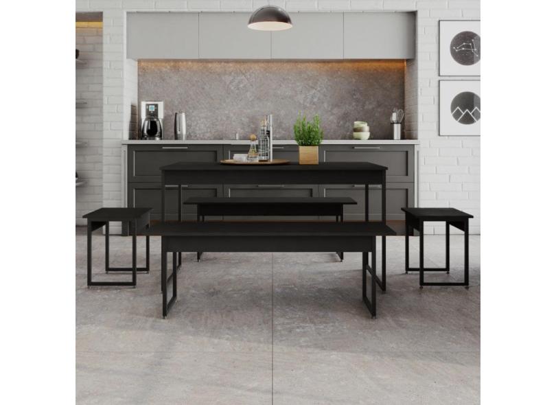 Conjunto Mesa de Jantar Industrial com 2 Bancos/2 Banquetas - Preto