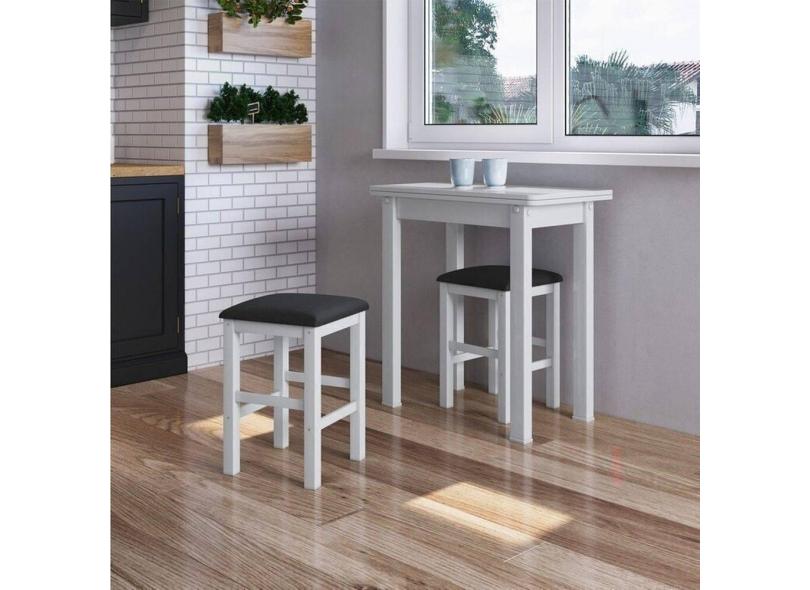 Conjunto Mesa para Sala de Jantar Dobrável com 4 Banquetas Branco