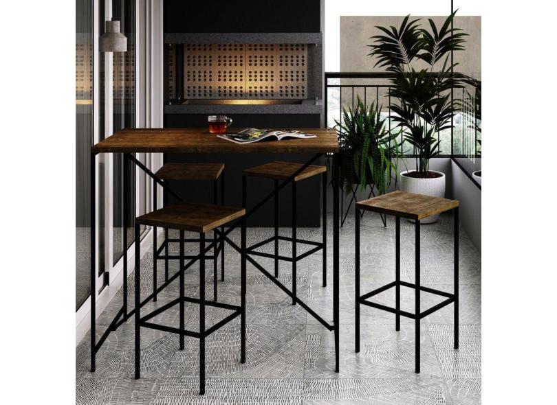 Conjunto Sala de Jantar Mesa 110x60cm Bancada com 4 Banquetas Steel Quadra Industrial Artesano Vermont/preto