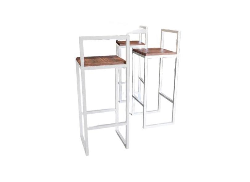 Jogo 2 Banqueta Alta Balcão Bistrô Industrial Branca Madeira Imbuia