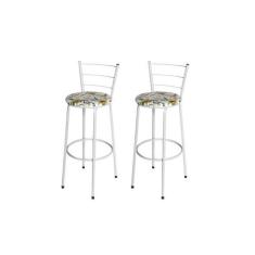 Jogo 2 Banqueta Alta Para Cozinha Epoxi Branca Estofado Floral - Lamar