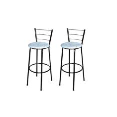 Jogo 2 Banqueta Alta Para Cozinha Epoxi Preta Estofado Floral - Lamar