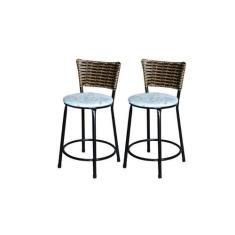 Jogo 2 Banqueta Baixa Para Cozinha Ratan Cappuccino Preta Estofado Flo