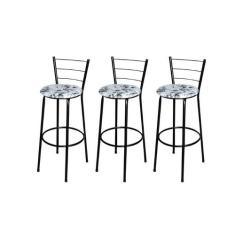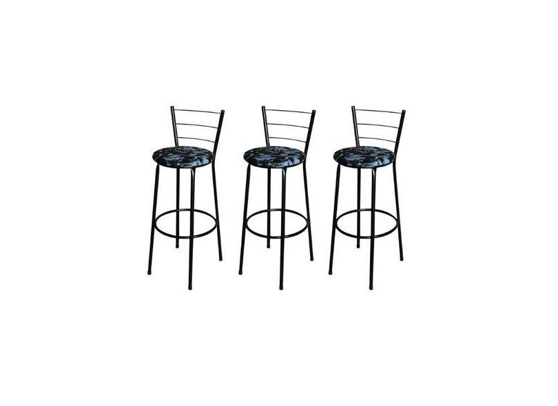 Jogo 3 Banqueta Alta Para Cozinha Epoxi Preta Estofado Floral - Lamar