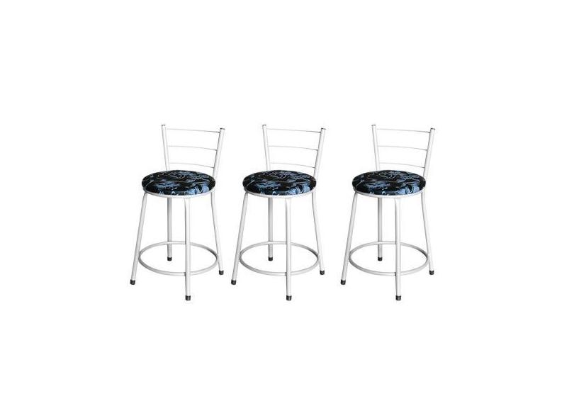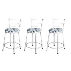 Jogo 3 Banqueta Baixa Para Cozinha Epoxi Branca Estofado Floral - Lama