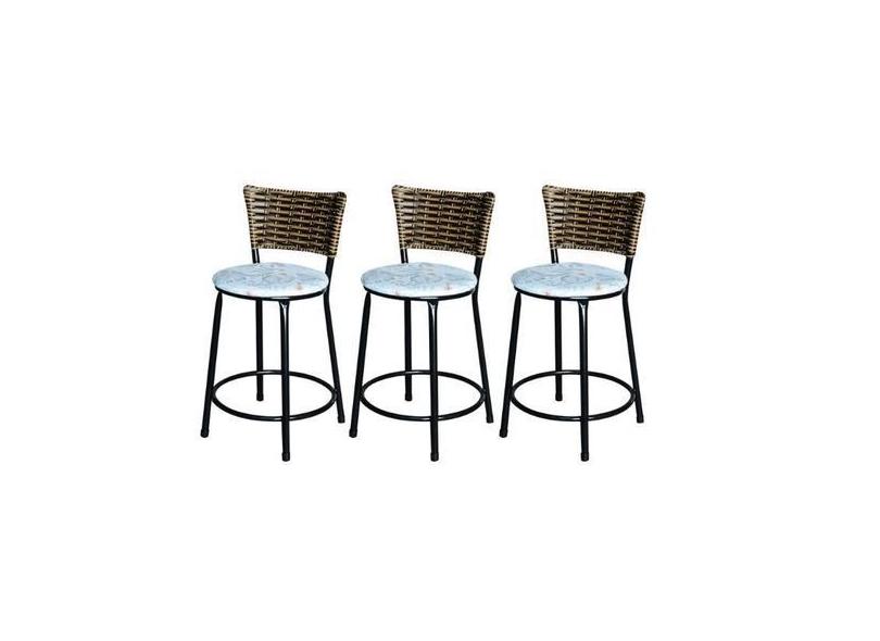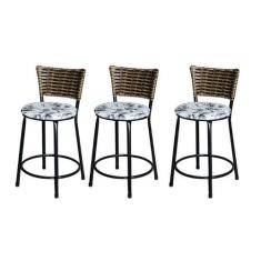 Jogo 3 Banqueta Baixa Para Cozinha Ratan Cappuccino Preta Estofado Flo