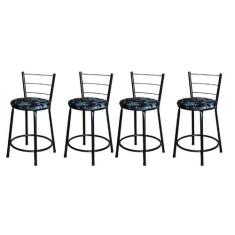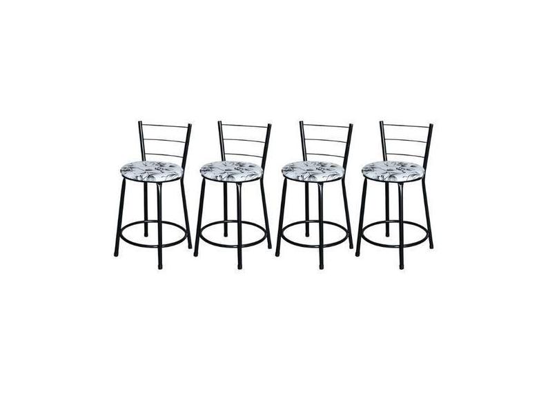 Jogo 4 Banqueta Baixa Para Cozinha Epoxi Preta Estofado Floral - Lamar