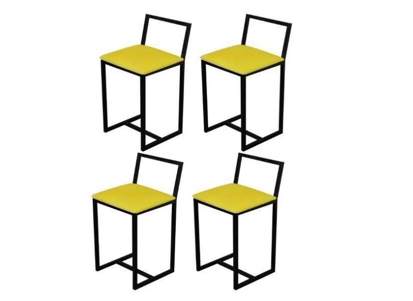 Jogo 4 Banqueta Baixa Para Cozinha Preta Industrial Estofado