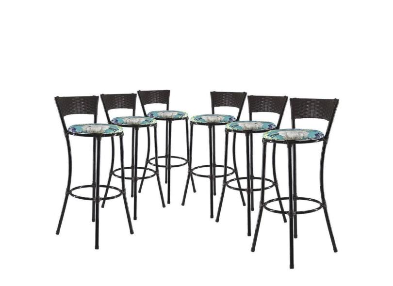 Jogo 6 Banquetas Alta Forts Fibra Uv Bancada, área Goumert, Bar, Piscina, Balcão, Floral Azul