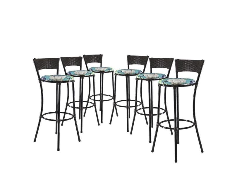 Jogo Com 6 Banquetas Alta Forts Fibra Uv Bancada, área Goumert, Bar, Piscina, Balcão, Floral Azul