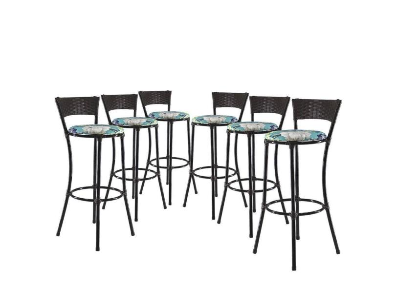 Jogo Com 6 Banquetas Altas Forts Fibra Uv Bancada, área Goumert, Bar, Piscina, Balcão, Floral Azul