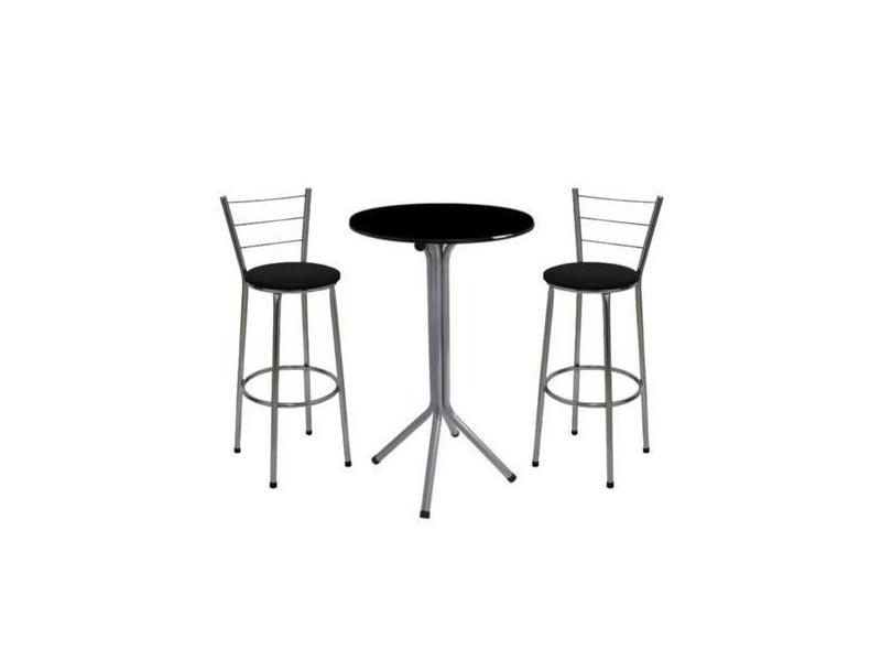 Jogo de 2 Banquetas Prata Assento Preto com Bistro Cinza e Preto - For
