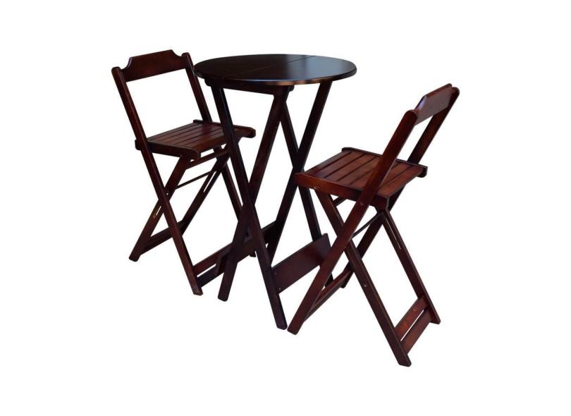 Jogo de Bistrô Dobrável em Madeira Maciça C/ 02 Banquetas Altas - Imbuia