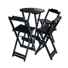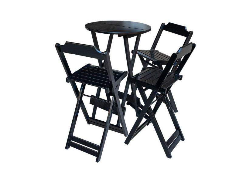 Jogo De Mesa Bistrô Dobrável Em Madeira Maciça Com C/3 Banquetas Altas - Preto - Preto