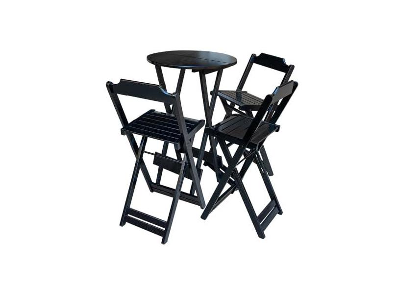 O menor preço encontrado no Brasil para JOGO DE MESA BISTRÔ DOBRÁVEL EM MADEIRA MACIÇA COM C/3 BANQUETAS ALTAS - PRETO atualmente é R$ 544,11.