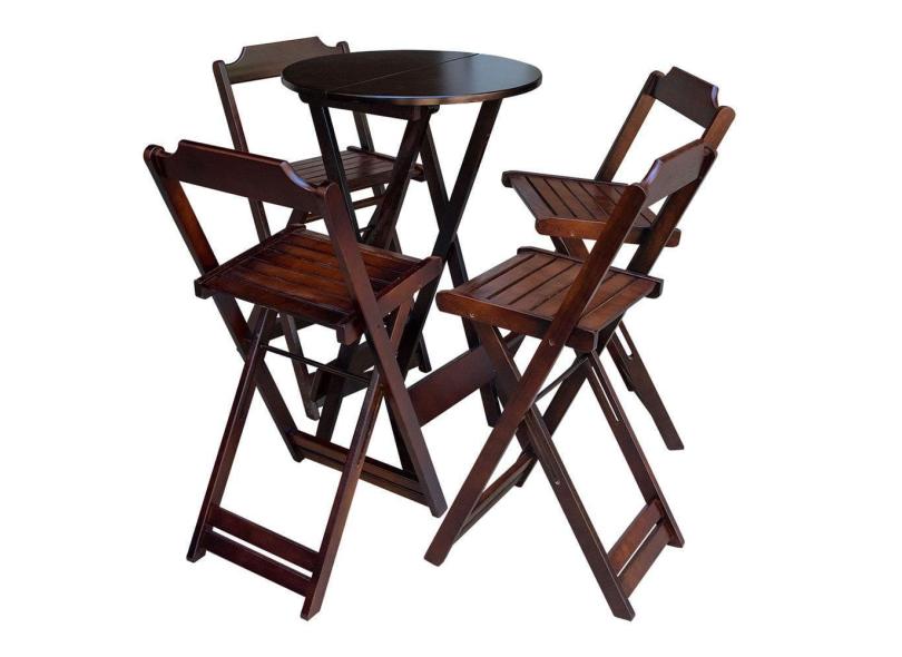 O menor preço encontrado no Brasil para Jogo de Mesa Bistrô Dobrável em Madeira Padrão com 4 Banquetas Altas - Imbuia atualmente é R$ 569,55.