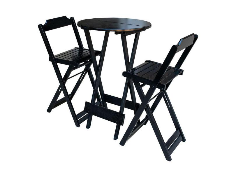 Jogo De Mesa Bistrô Dobrável Em Madeira Padrão Com C/2 Banquetas Altas - Preto - Preto