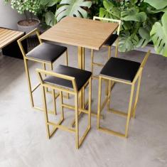Jogo Mesa Alta Bistrô Quadrada Pinus 4 Banquetas Estofado Confort Indu