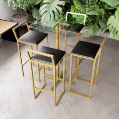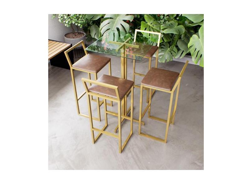 Jogo Mesa Alta Bistrô Quadrada Vidro 4 Banquetas Estofado Confort Indu