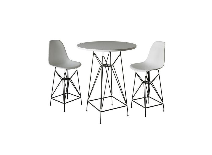 Jogo Mesa Bistrô Eames Branca 60Cm 2 Banquetas Branca Base Ferro Preto - Cor: Branco
