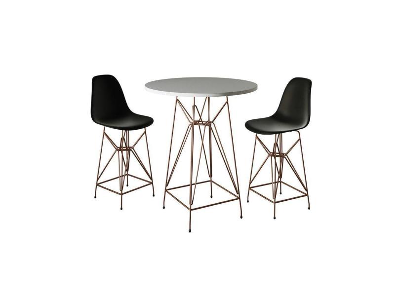 Jogo Mesa Bistrô Eames Branca 60Cm 2 Banquetas Preta Base Ferro Cobre - Cor: Branco