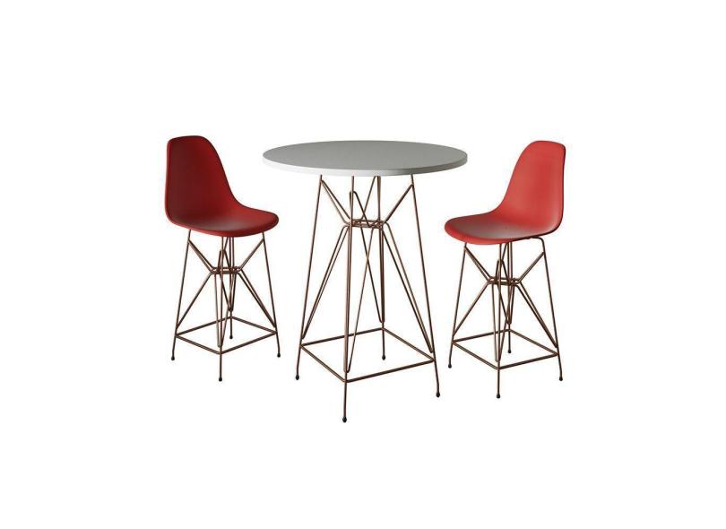 O menor preço encontrado no Brasil para Jogo Mesa Bistrô Eames Branca 60Cm 2 Banquetas Vermelha Base Ferro Cobre - Cor: Branco atualmente é R$ 897,22.