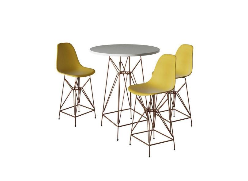 O menor preço encontrado no Brasil para Jogo Mesa Bistrô Eames Branca 60Cm 3 Banquetas Amarela Base Ferro Cobre - Cor: Branco atualmente é R$ 1.172,56.