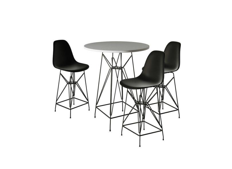 Jogo Mesa Bistrô Eames Branca 60Cm 3 Banquetas Preta Base Ferro Preto - Cor: Branco