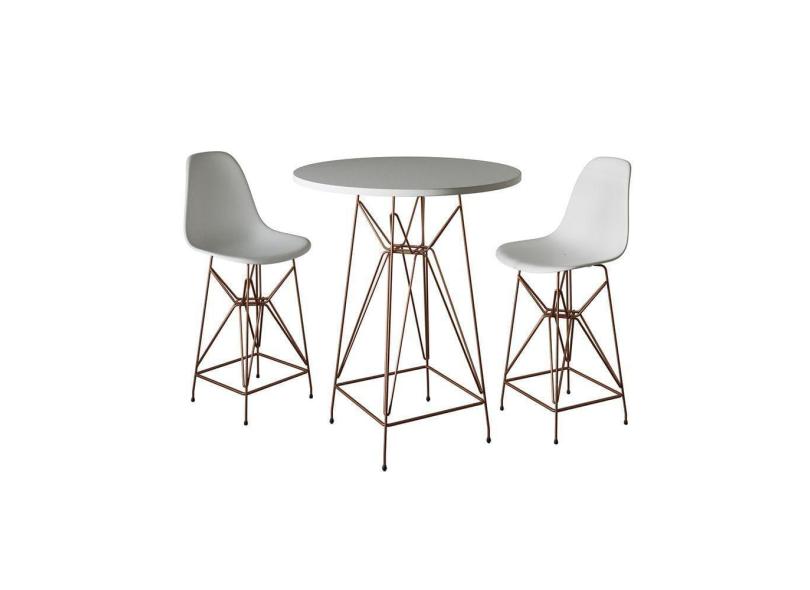 Jogo Mesa Bistrô Eames Eiffel Branca 60cm 2 Banquetas Branca Base Ferro Cobre