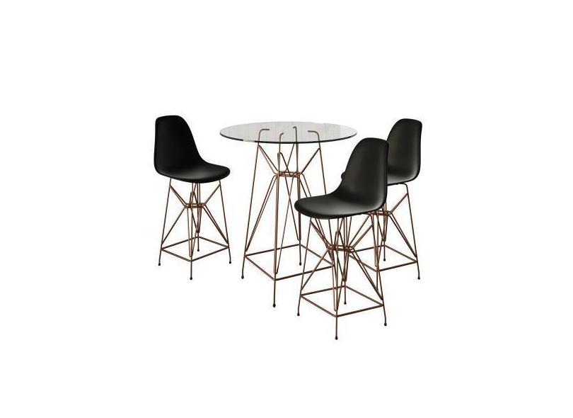 Jogo Mesa Bistrô Eames Eiffel Vidro 60cm 3 Banquetas Preta Base Ferro