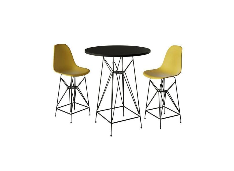 O menor preço encontrado no Brasil para Jogo Mesa Bistrô Eames Preta 60Cm 2 Banquetas Amarela Base Ferro Preto - Cor: Preto atualmente é R$ 975,24.