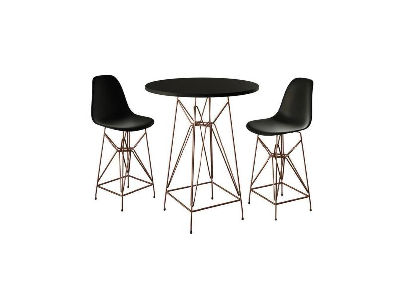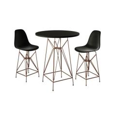 Jogo Mesa Bistrô Eames Preta 60Cm 2 Banquetas Preta Base Ferro Cobre - Cor: Preto