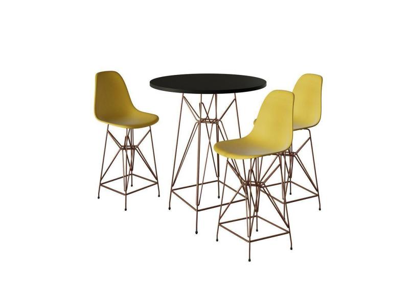 O menor preço encontrado no Brasil para Jogo Mesa Bistrô Eames Preta 60Cm 3 Banquetas Amarela Base Ferro Cobre - Cor: Preto atualmente é R$ 1.274,52.